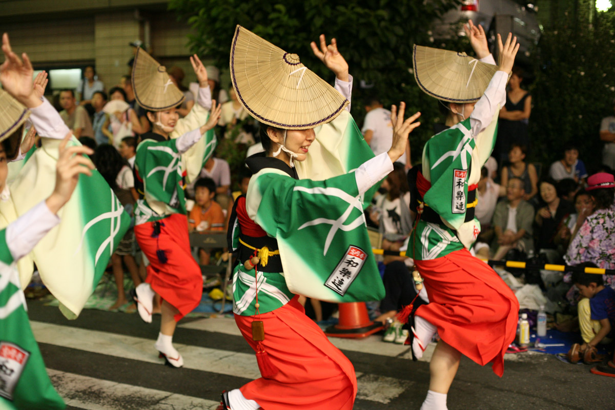Lancé en 1985 par un habitant de Tokushima, cet événement est aujourd’hui le troisième plus grand du Japon. Des dizaines de troupes s’y produisent devant un public en nombre et enthousiaste. - Dernier week-end d’août : Koenji Awa Odori à Tokyo