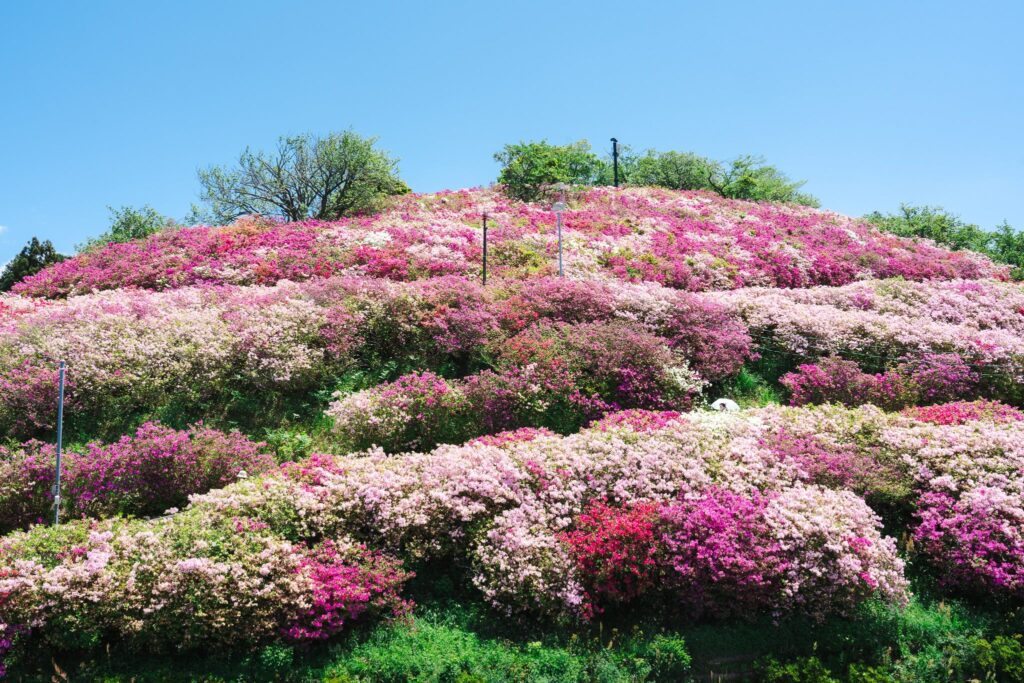 Du haut de ses 320 mètres d’altitude, le mont Tomisuyama domine paisiblement la plaine d’Ozu depuis le nord. Depuis son sommet, on profite d’un superbe panorama sur la ville et ses vallées et collines environnantes. Mais c’est surtout au cœur du printemps japonais que le mont Tomisuyama attire les regards : de fin avril à mi-mai, plus de 60 000 azalées recouvrent ses pentes de teintes vives, entre rose et fuchsia. Un décor spectaculaire qui en fait l’un des plus beaux endroits du Japon durant la saison des azalées.